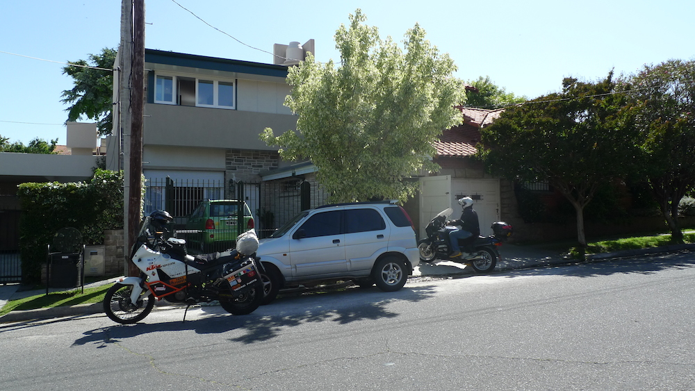 Estábamos con Patricia mi esposa, desayunando en la cocina cuando a las 8 y 30 apareció con mucha cara de dormido y sonriente Martín y con un buen día nos saludo, Patricia le sirvió un jugo de naranjas recién exprimido y por supuesto arrancó nuevamente la charla, ya dirigida a su pronta partida. Una hora después ambos en las motos arrancamos a repostar combustible y tomamos la ruta costera al sur en demanda de Miramar, pintoresco paseo al borde del mar y  luego de dejar esa ciudad balnearia a la izquierda nos dirigimos al cruce de rutas donde nos despedimos.