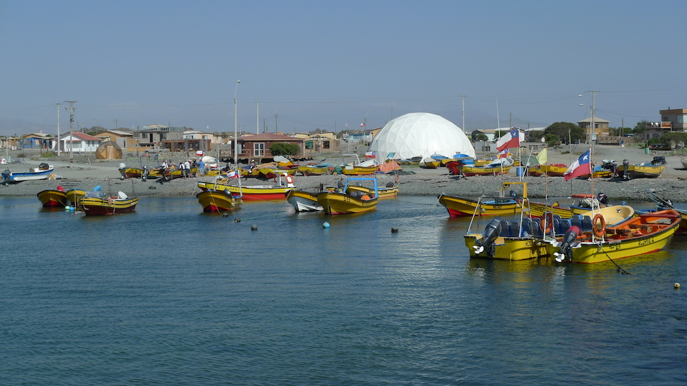 Salgo en dirección otra vez a la costa una vez repostada la moto y me vuelvo a meter por las pistas que van pegadas al mar. Paso por algunos pueblecitos pesqueros y el paisaje me sigue teniendo embriagado cada segundo. Montañas sin vegetación, zonas de arena y en algunos tramos viendo el Pacífico a mi izquierda. ¡Puro Atacama!