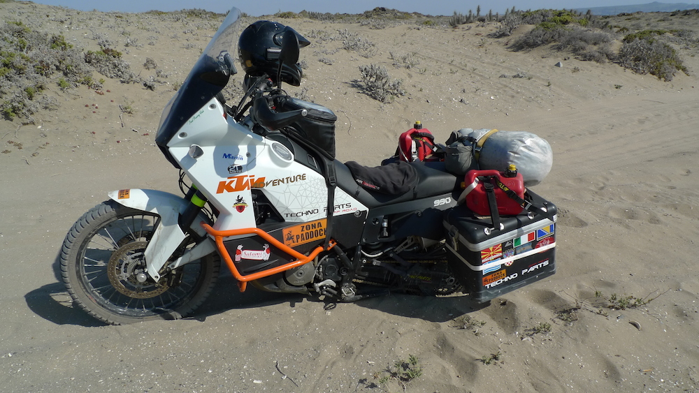 En los últimos días he tenido una avería, una caída y me he quedado enganchado en la arena pero a pesar de todo esto, cada día estoy mas contento. Esta felicidad es consecuencia de una mezcla entre los sitios que estoy recorriendo y sobre todo porque me encanta la forma con la que estoy afrontando mis problemillas, con mucha mas paciencia de la que tendría en mi día a día y sin mosquearme ni una sola vez por mi desdicha. (mecánico manazas aparte)