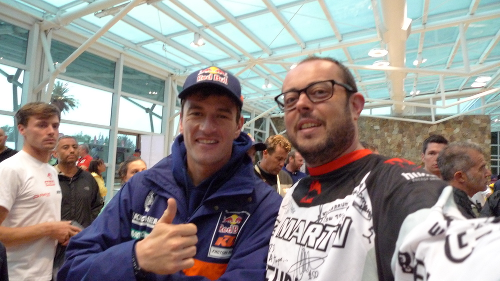 Allí vi como Chilo se acercó a Despress a que le firmara el libro del Dakar y este se negó porque estaban en el briefing (aunque ya había terminado y estaban hablando de las zonas de espectadores o algo así) luego le pregunté a Chilo y estaba mosqueadísimo y aunque luego el francés le miró como para ofrecerse a firmárselo Chilo se dio la vuelta y pasó de el. Ganando odiadores por donde pasa.