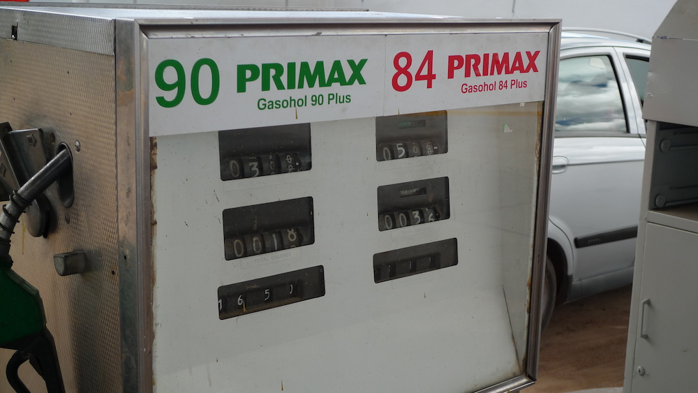 En realidad sigue sin ser gasolina y es la mezcla con alcohol llamada gasohol pero la moto va bien de momento y no se nota demasiado la pérdida de potencia ni el aumento de consumo, mas bien lo contrario aunque como voy sin freno trasero tampoco corro mucho.