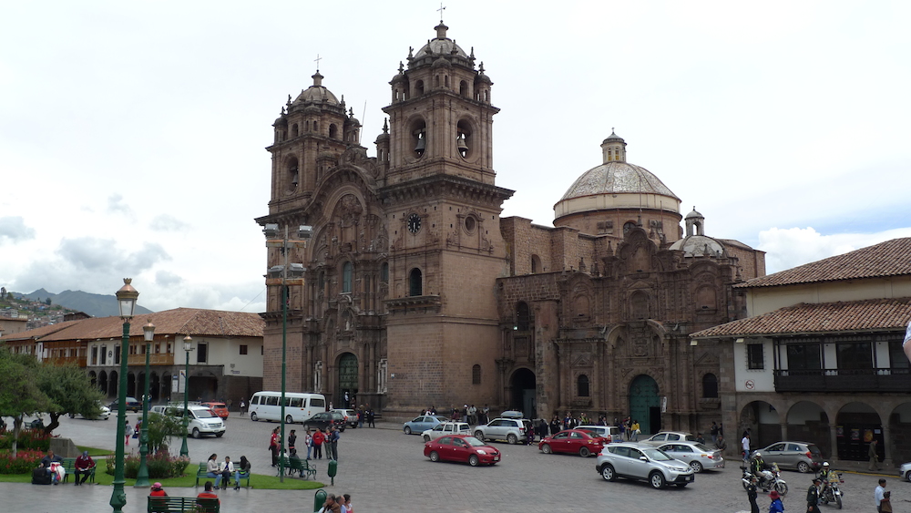 Encontré hotel en la Plaza de Armas de la ciudad, junto a la catedral. Por 25€ tenía una buena habitación con vistas a la plaza, un pedazo de baño y la posibilidad de moverme andando sin hacer grandes esfuerzos porque seguía a 3.800m sobre el nivel del mar. Eso si, la moto la metí en el sótano del hotel bajando por unas rampas metálicas portátiles que no ofrecían demasiada confianza pero no estaba como para buscar otras opciones.