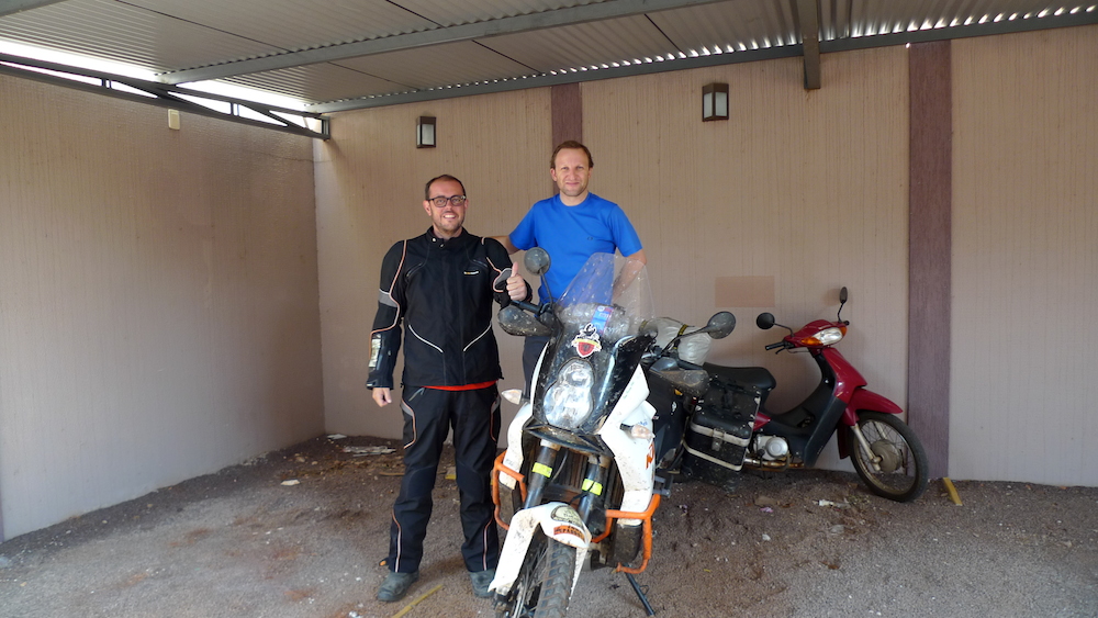 Fui recibido mucho mejor de lo que merezco y todo fueron facilidades y ayudas. Pude darme una necesaria ducha después de mi paseo por las cataratas, lavar mi ropa, relajarme un poco mientras seguíamos hablando de motos y viajes. Me presentó a su novia de la que ya nos había hablado durante aquellos tres días de viaje juntos y me contó un poco como era su vida por allí.